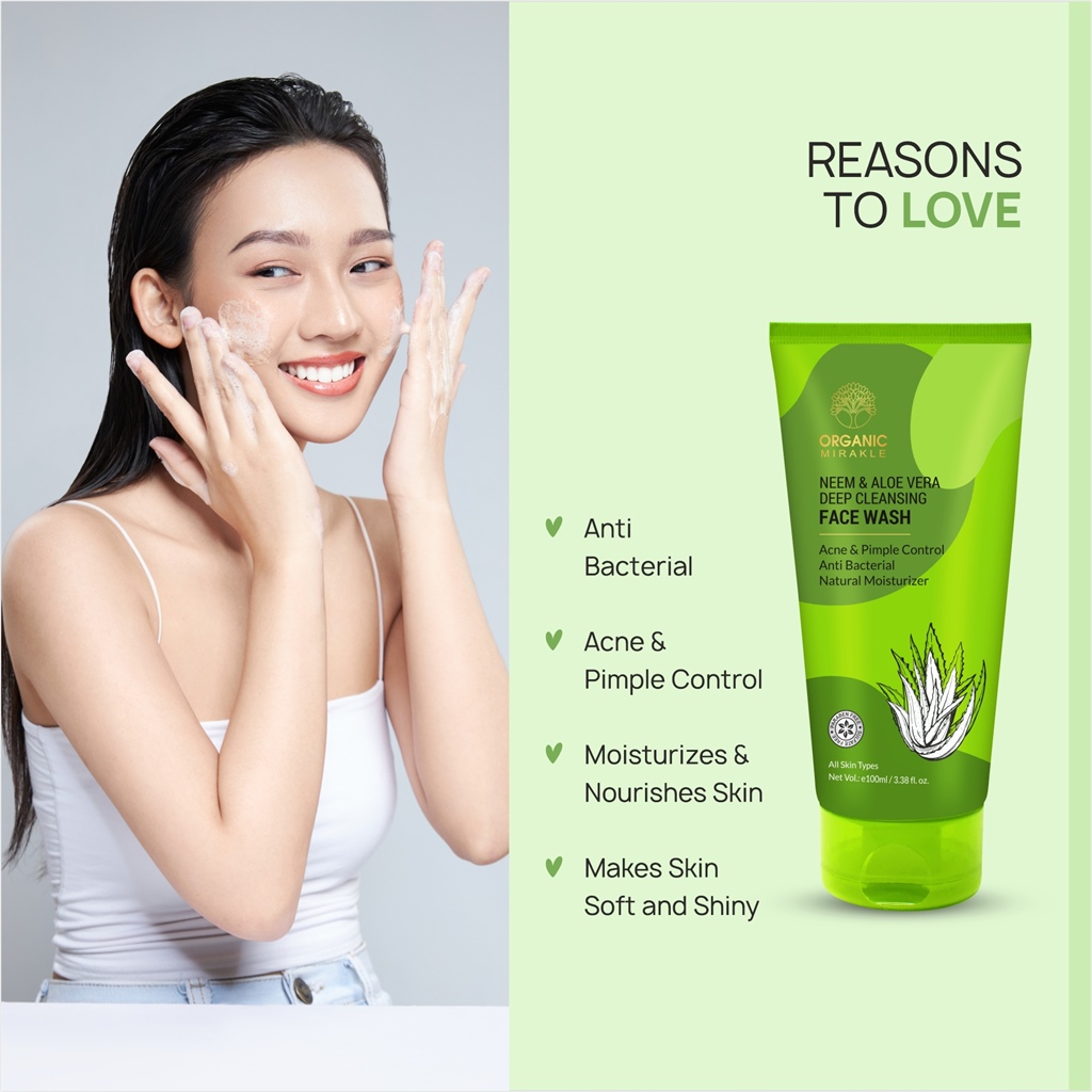 Natural Purifiying Neem & Aloe Vera Face Wash is an antiseptic face wash to ease out acne, give deep pore cleansing and freshness of newwm which is an excellent agent and aloevera is ideal against skin ailments and acts as a natural moisture maintainer leaving your skin soft & shiny.