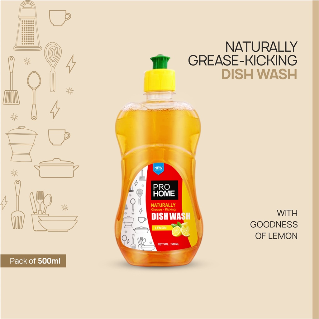 Pro Home's naturally Grease-kicking Dish wash is a effective and powerful dish wash formula that cuts tough grease residue.Naturally Grease-Kicking Dish wash puts the hurt on grease, keeping your hands happy.Removes foul smell and gives a refreshing lemon fragrance and leaves sparkling clean utensils.