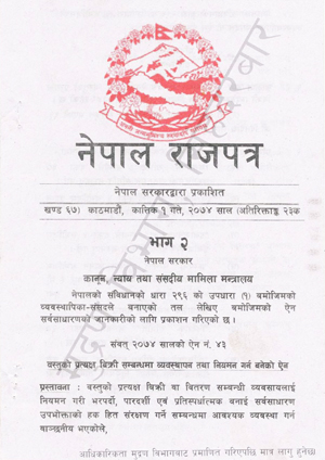 वस्तुको प्रत्यक्ष बिक्री संम्वन्धमा व्यवस्थापन तथा नियमन गर्न बनेको ऐन