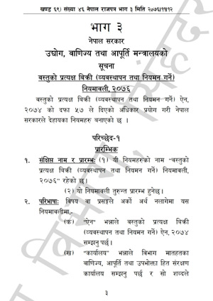 वस्तुको प्रत्यक्ष विक्री व्यवस्थापन तथा नियमन गर्ने नियमावली, २०७६
